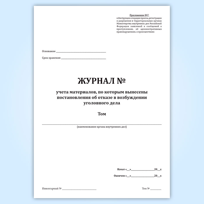 Журнал учета материалов, по которым вынесены постановления об отказе в возбуждении уголовного дела в Ижевске купить