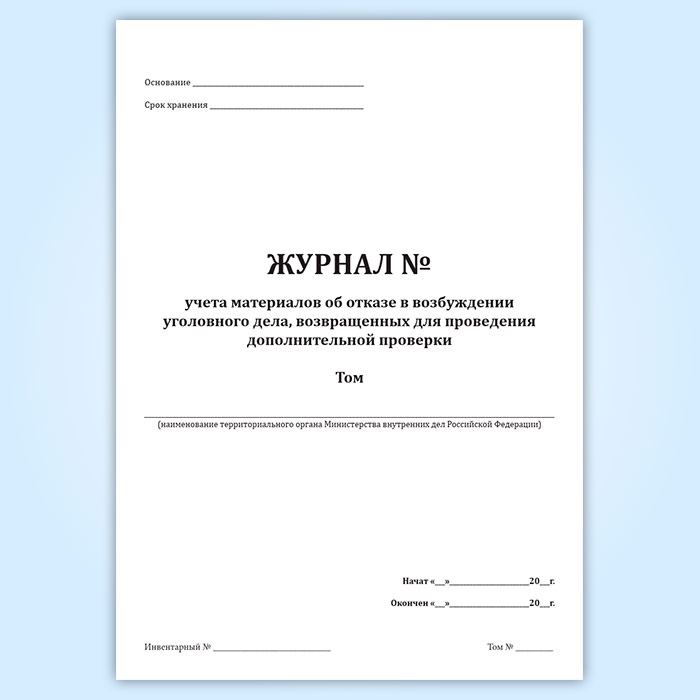 Журнал учета материалов об отказе в возбуждении уголовного дела, возвращенных для проведения дополнительной проверки в Ижевске купить