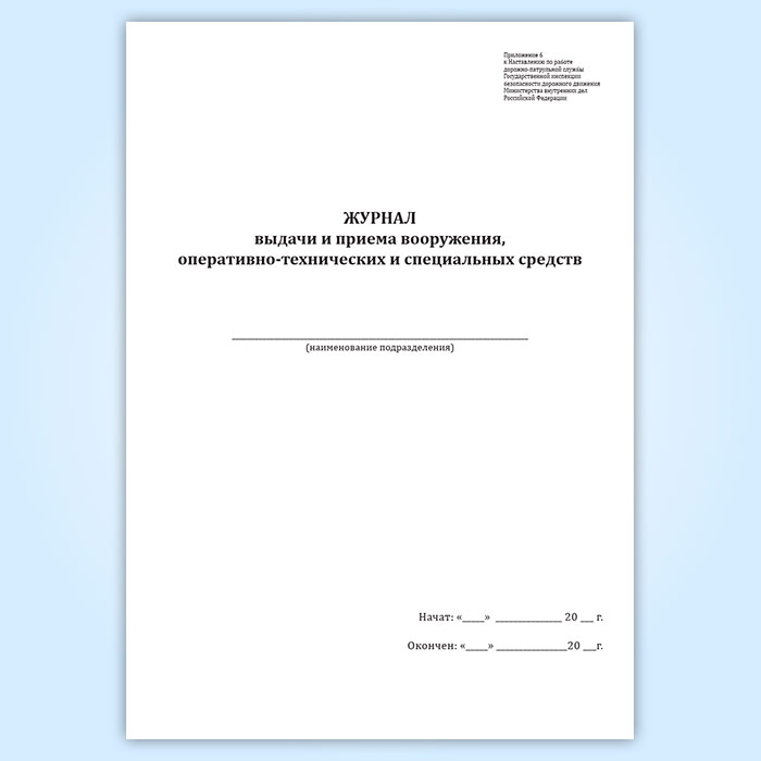 Журнал выдачи и приема вооружения, оперативно-технических и специальных средств в Ижевске купить