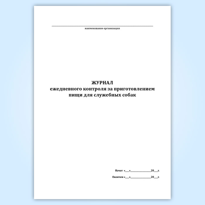 Журнал ежедневного контроля за приготовлением пищи для служебных собак в Ижевске купить