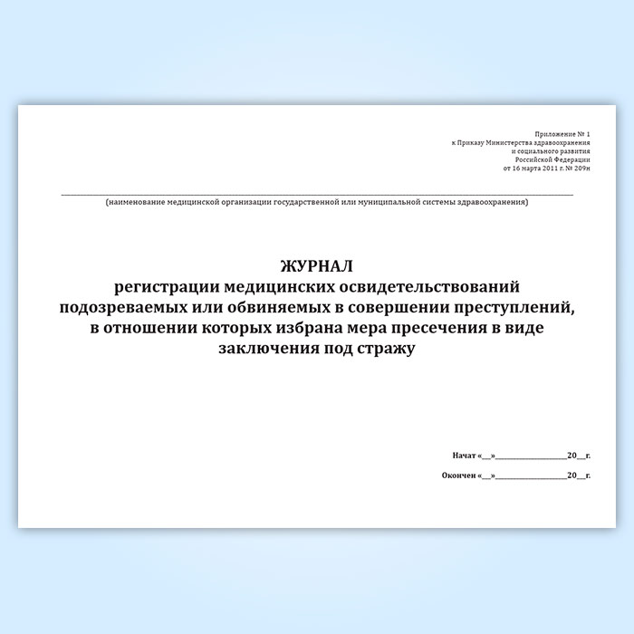 Журнал регистрации медицинских освидетельствований подозреваемых или обвиняемых в совершении преступлений, в отношении которых избрана мера пресечения в виде заключения под стражу в Ижевске купить