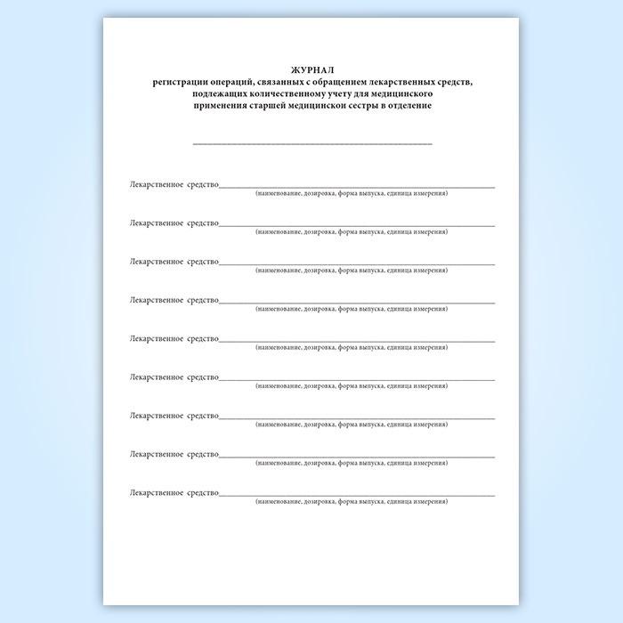Журнал регистрации операций, связанных с обращением лекарственных средств, подлежащих количественному учету для медицинского применения старшей медицинской сестры в отделение в Ижевске купить