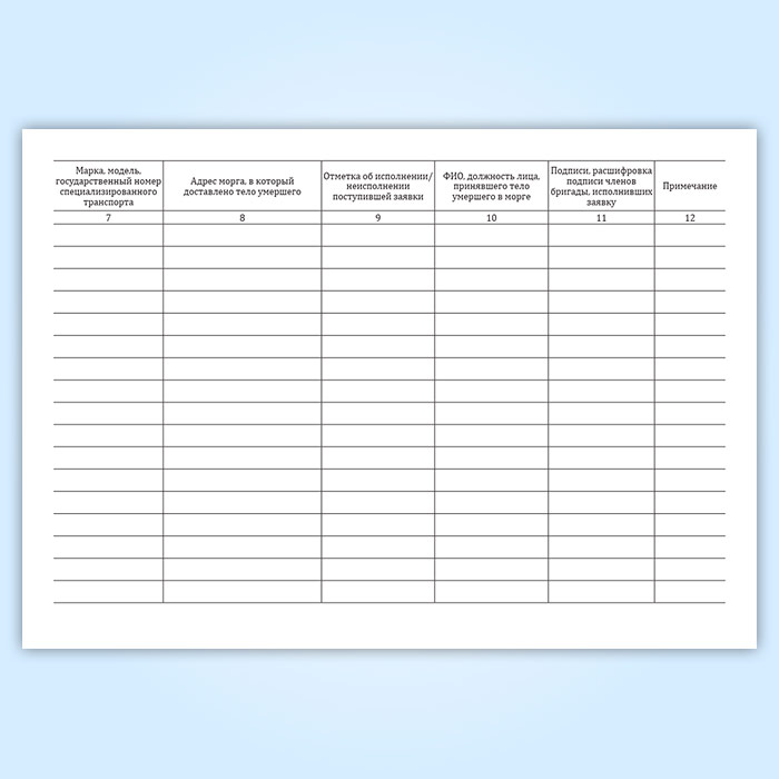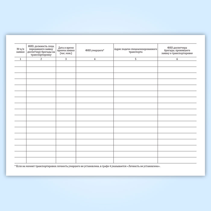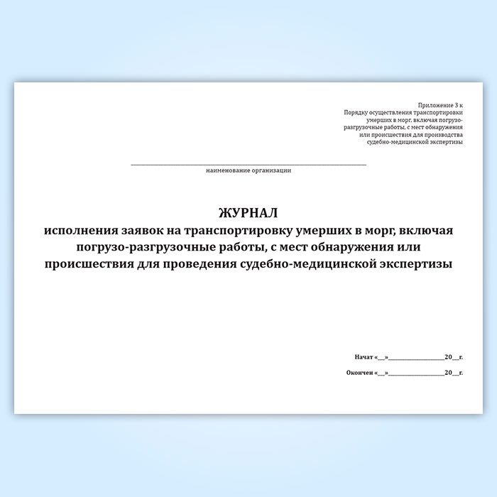Журнал исполнения заявок на транспортировку умерших в морг, включая погрузо-разгрузочные работы, с мест обнаружения или происшествия для проведения судебно-медицинской экспертизы в Ижевске купить