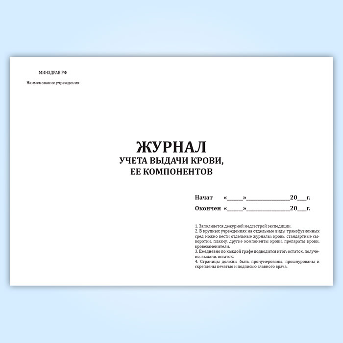 Журнал учета выдачи крови, ее компонентов в Ижевске купить