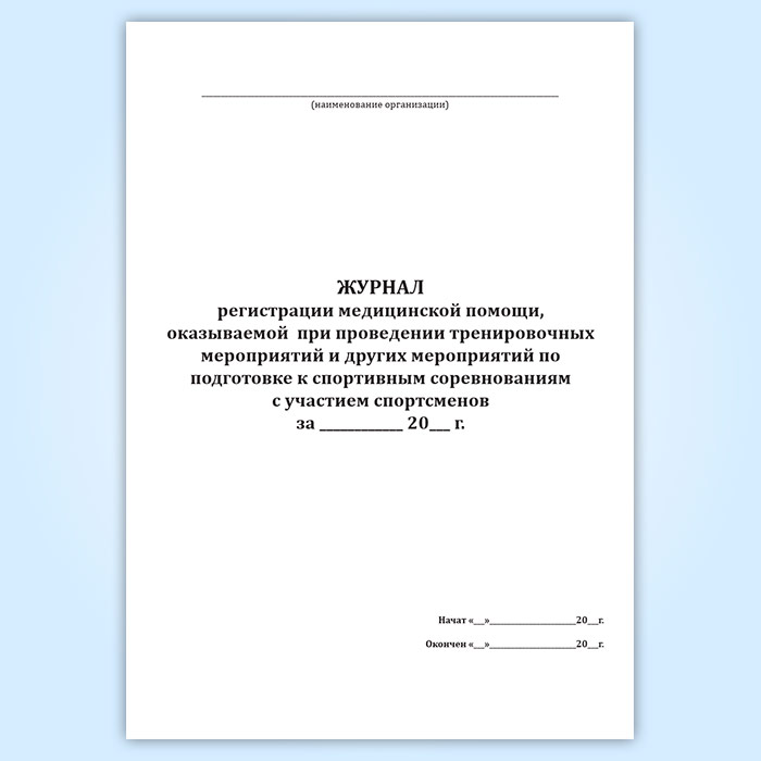 Журнал регистрации медицинской помощи, оказываемой при проведении тренировочных мероприятий и других мероприятий по подготовке к спортивным соревнованиям с участием спортсменов в Ижевске купить