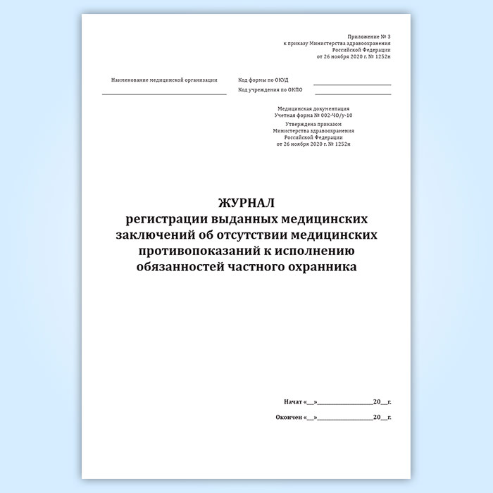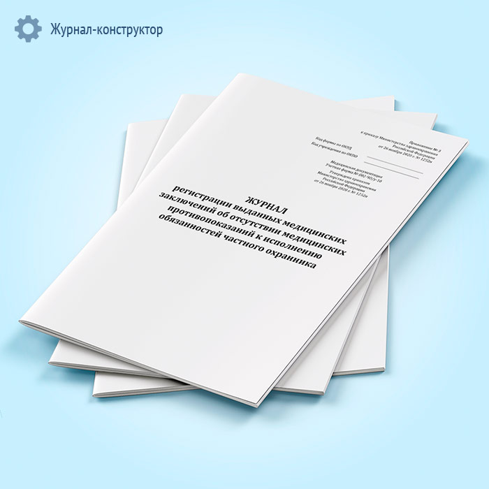 Журнал регистрации выданных медицинских заключений об отсутствии медицинских противопоказаний к исполнению обязанностей частного охранника (учетная форма № 002-ЧО/у-10) в Ижевске купить
