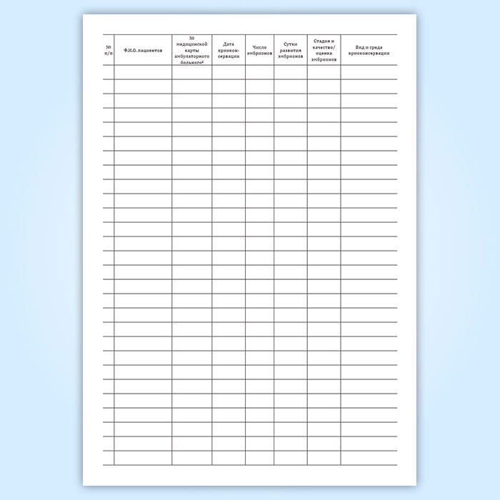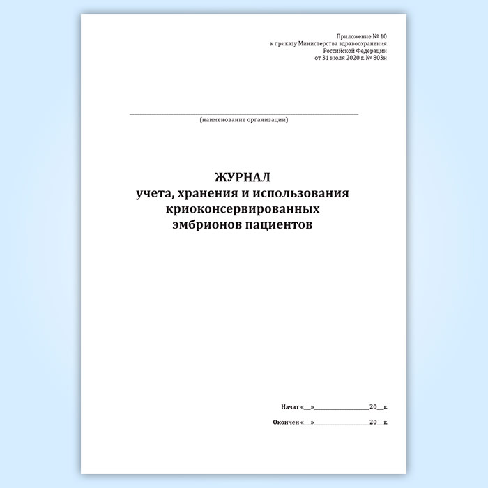 Журнал учета, хранения и использования криоконсервированных эмбрионов пациентов в Ижевске купить