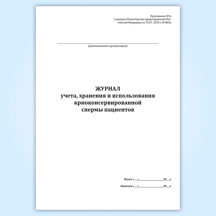 Журнал учета, хранения и использования криоконсервированной спермы пациентов в Ижевске купить
