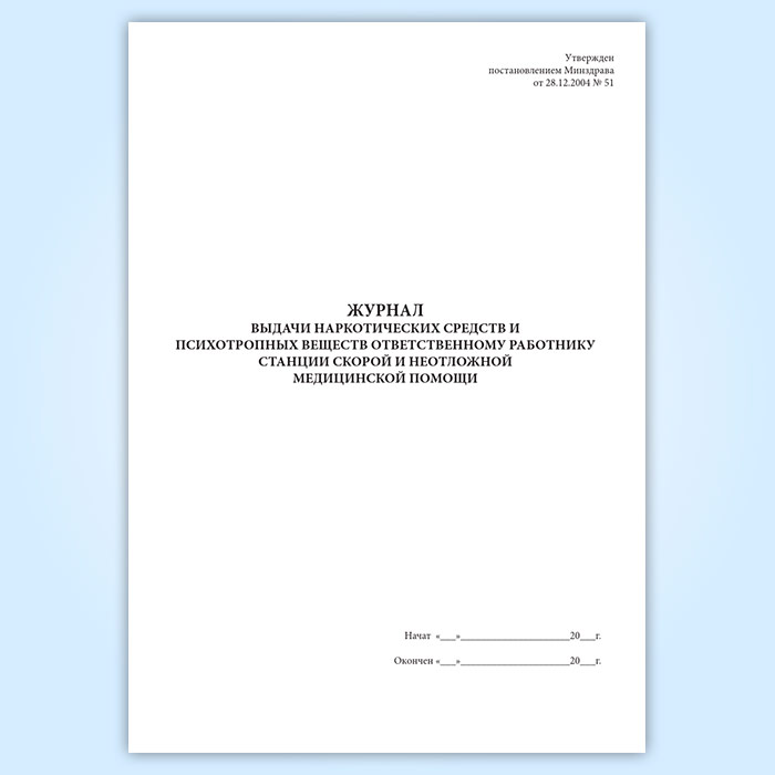 Журнал выдачи наркотических средств и психотропных веществ ответственному работнику станции скорой и неотложной медицинской помощи в Ижевске купить