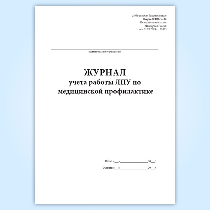 Журнал учета работы ЛПУ по медицинской профилактике (форма 038у-02) в Ижевске купить