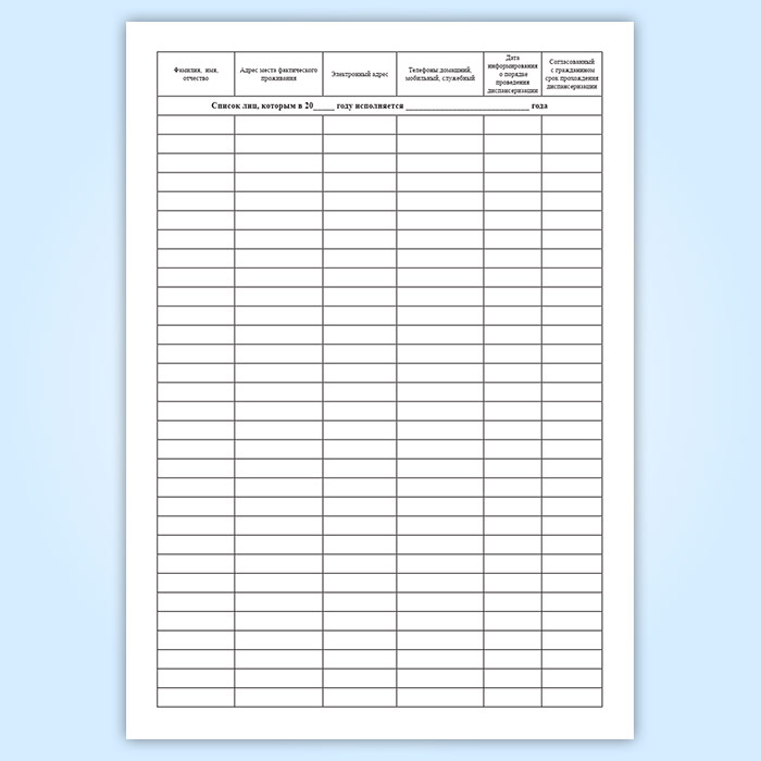 Поименный и повозрастной список граждан терапевтического, в том числе цехового, участка (участка врача общей практики (семейного врача)) в Ижевске купить
