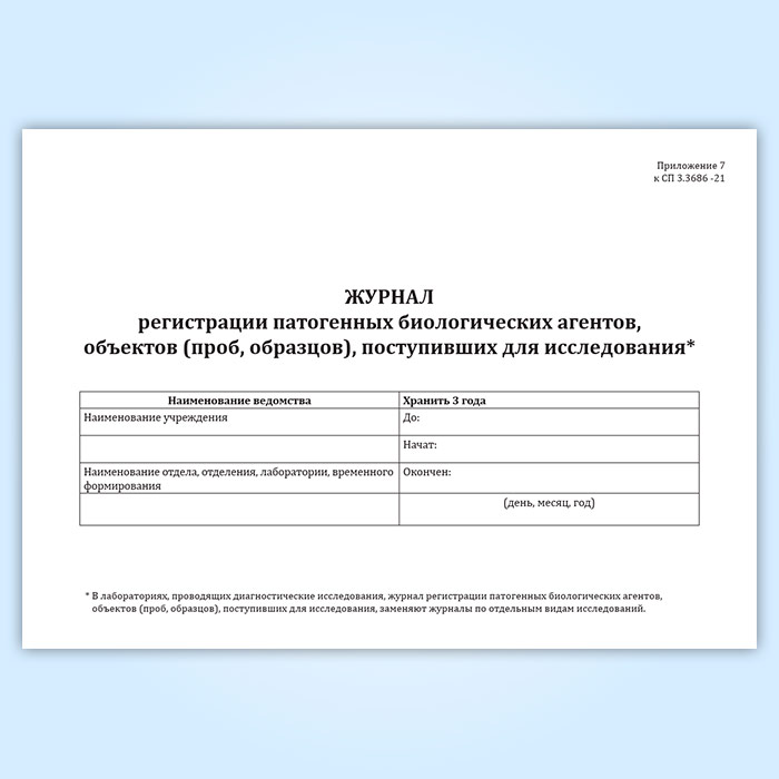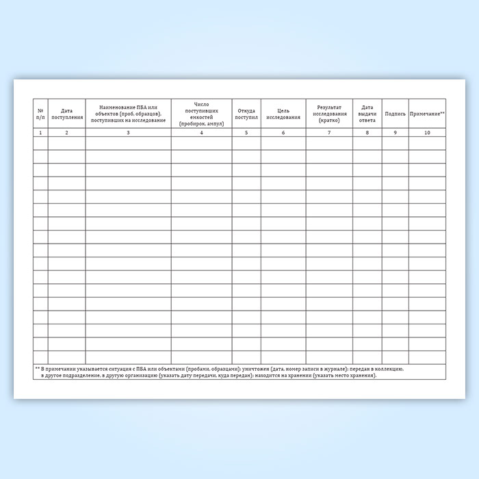 Журнал регистрации патогенных биологических агентов, объектов (проб, образцов), поступивших для исследования в Ижевске купить