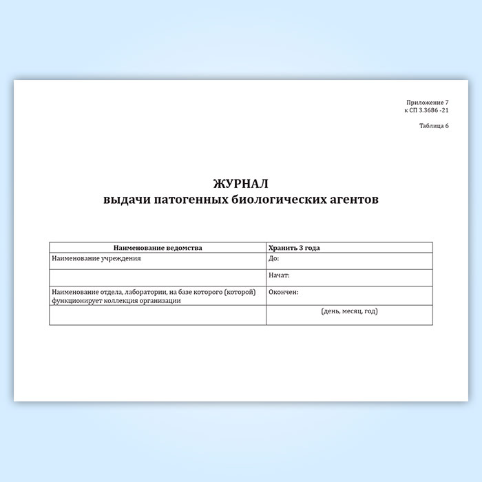 Журнал выдачи патогенных биологических агентов (СанПиН 3.3686-21) в Ижевске купить