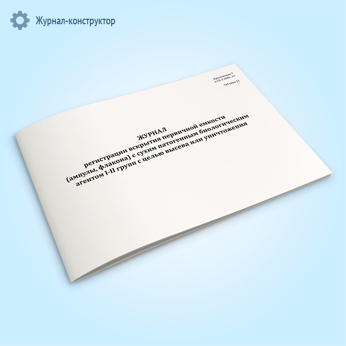 Журнал регистрации вскрытия первичной емкости (ампулы, флакона) с сухим патогенным биологическим агентов I-II групп с целью высева или уничтожения в Ижевске купить