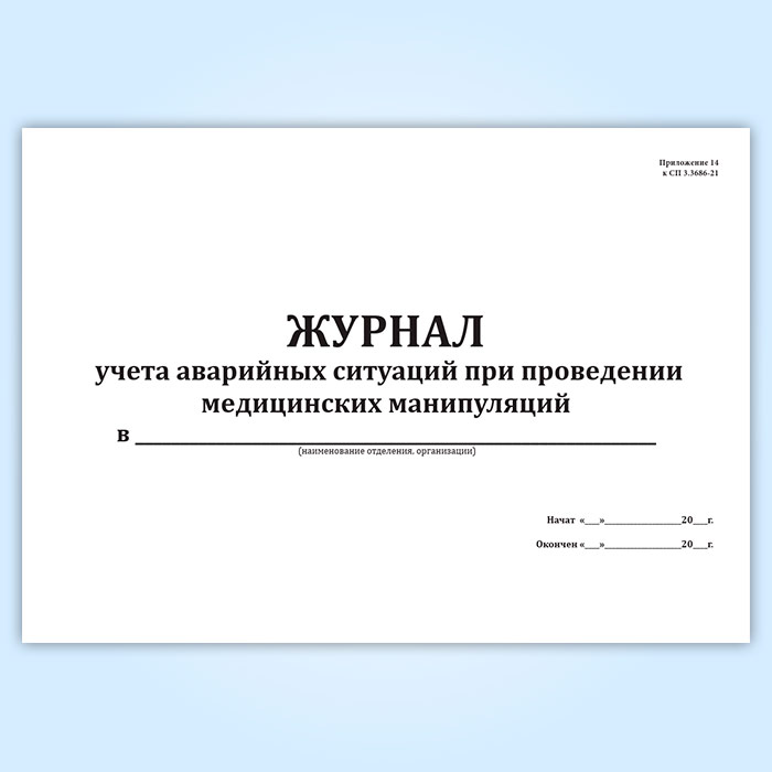 Журнал учета аварийных ситуаций при проведении медицинских манипуляций (СанПиН 3.3686-21) в Ижевске купить