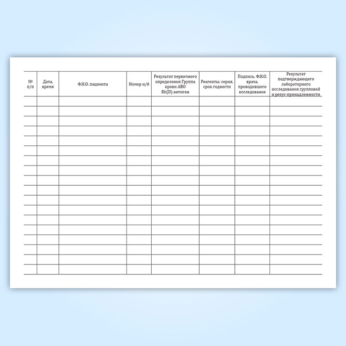 Журнал регистрации первичного определения группы крови в Ижевске купить