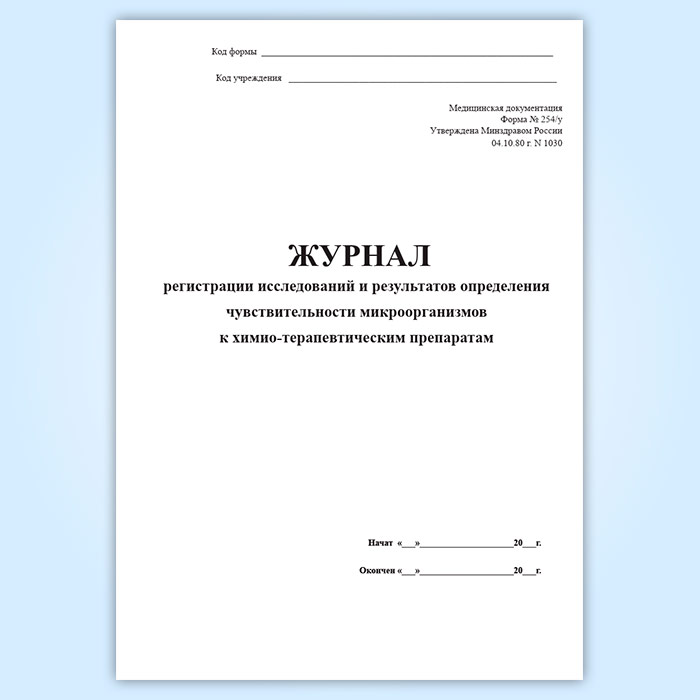 Журнал регистрации исследований и результатов определения чувствительности микроорганизмов к химио-терапевтическим препаратам (форма 254/у) в Ижевске купить