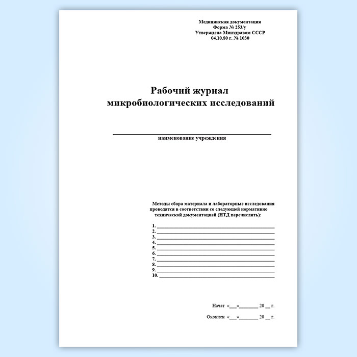 Рабочий журнал микробиологических исследований (форма 253/у) в Ижевске купить