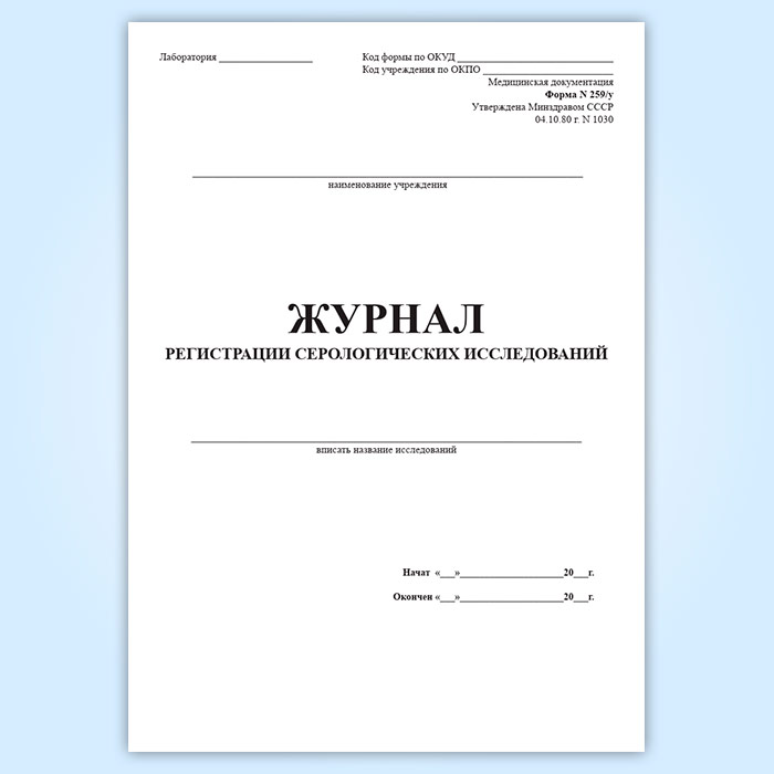 Журнал регистрации серологических исследований (форма 259/у) в Ижевске купить