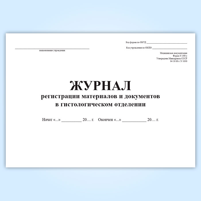 Журнал регистрации материалов и документов в гистологическом отделении (форма 190/у) в Ижевске купить