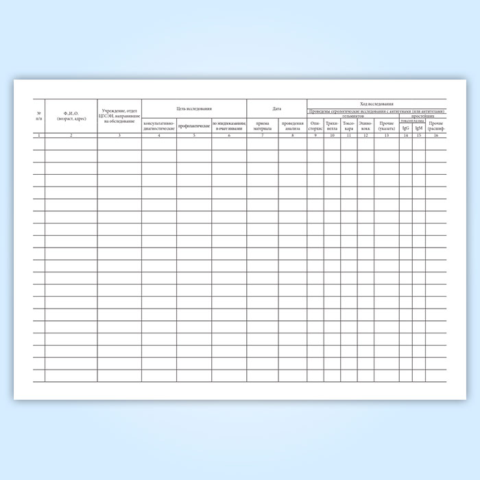 Журнал учета серологических исследований на паразитарные заболевания в Ижевске купить