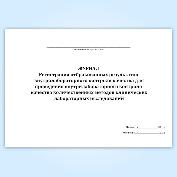 Журнал «Регистрация отбракованных результатов внутрилабораторного контроля качества для проведения внутрилабораторного контроля качества количественных методов клинических лабораторных исследований» в Ижевске купить