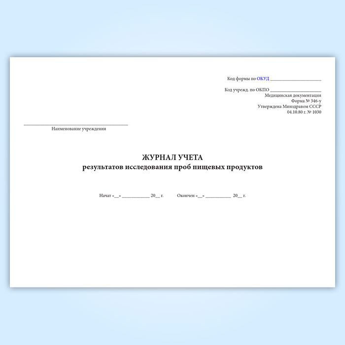 Журнал учета результатов исследования проб пищевых продуктов (форма 346/у) в Ижевске купить