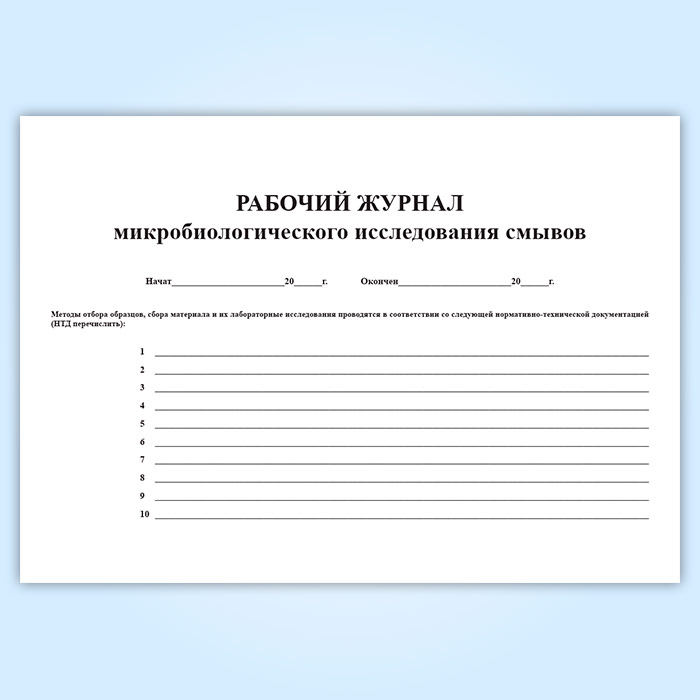 Рабочий журнал микробиологического исследования смывов (форма № 381у) в Ижевске купить