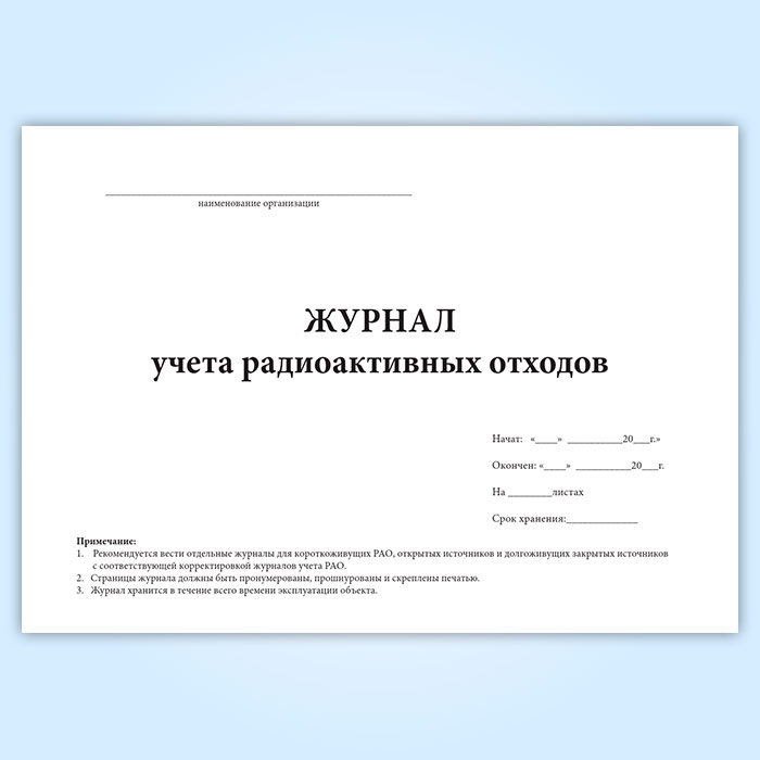 Журнал учета радиоактивных отходов (СанПиН 2.6.1.3288-15) в Ижевске купить