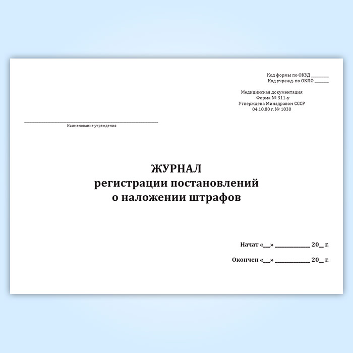 Журнал регистрации постановлений о наложении штрафов (форма 311-у) в Ижевске купить