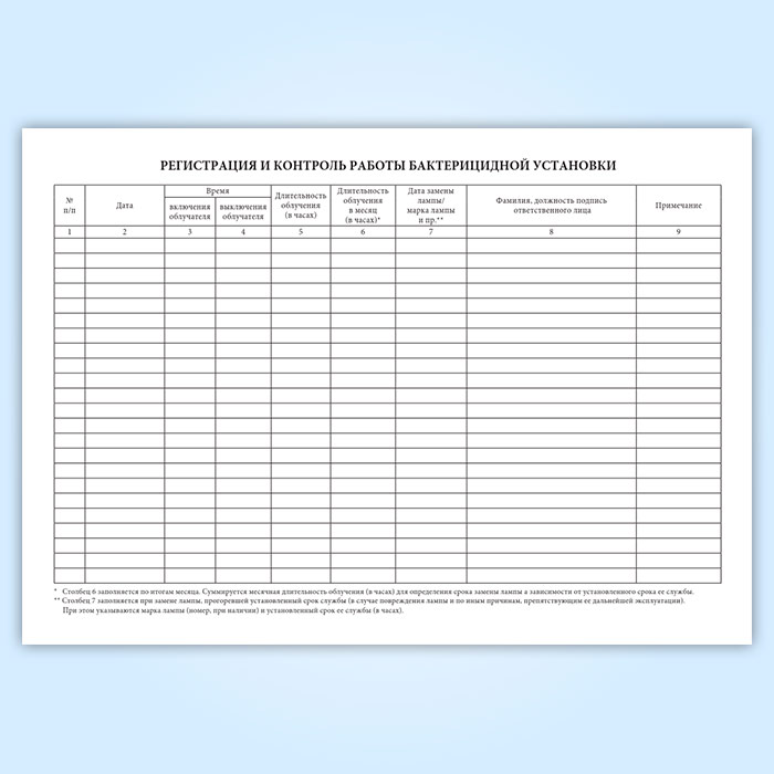 Журнал регистрации и контроля ультрафиолетовой бактерицидной установки (А4) в Ижевске купить