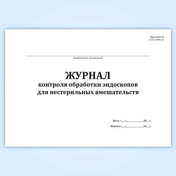Журнал контроля обработки эндоскопов для нестерильных вмешательств (СанПиН 3.3686-21) в Ижевске купить