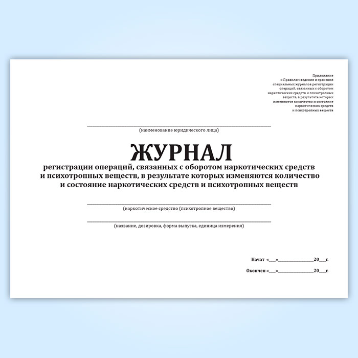 Журнал регистрации операций, связанных с оборотом наркотических средств и психотропных веществ, в результате которых изменяются количество и состояние наркотических средств и психотропных веществ в Ижевске купить