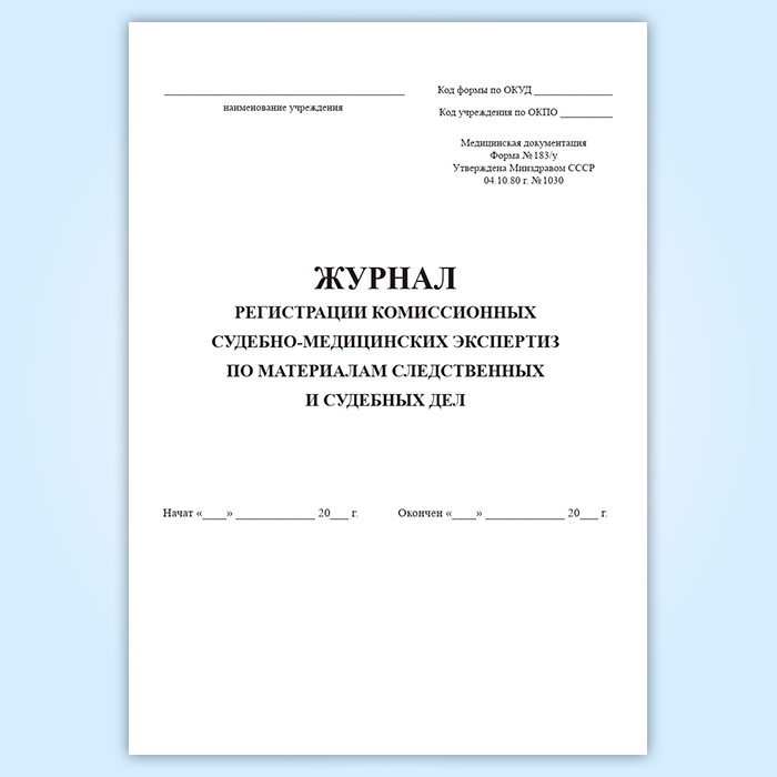 Журнал регистрации комиссионных судебно-медицинских экспертиз по материалам следственных и судебных дел (форма 183/у) в Ижевске купить