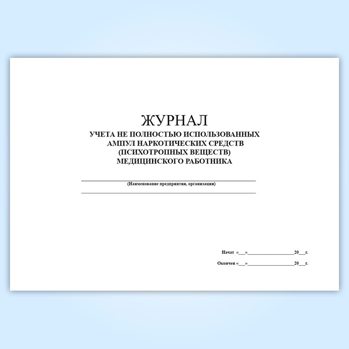 Журнал учета не полностью использованных ампул наркотических средств (психотропных веществ) медицинского работника в Ижевске купить
