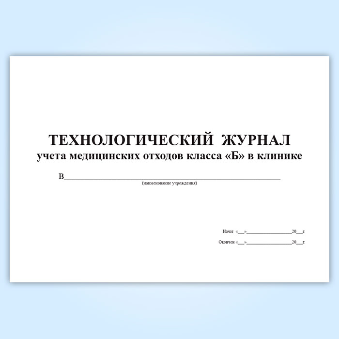 Технологический журнал учета медицинских отходов класса Б в клинике в Ижевске купить