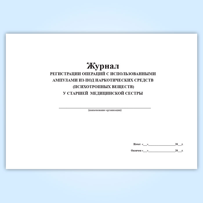 Журнал регистрации операций с использованными ампулами из-под наркотических средств (психотропных веществ) у старшей медицинской сестры в Ижевске купить