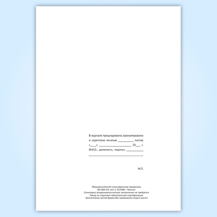 Вы получаете печатную продукцию прошнурованной и c местом для вашей печати в соответствии с действующими нормативными документами: