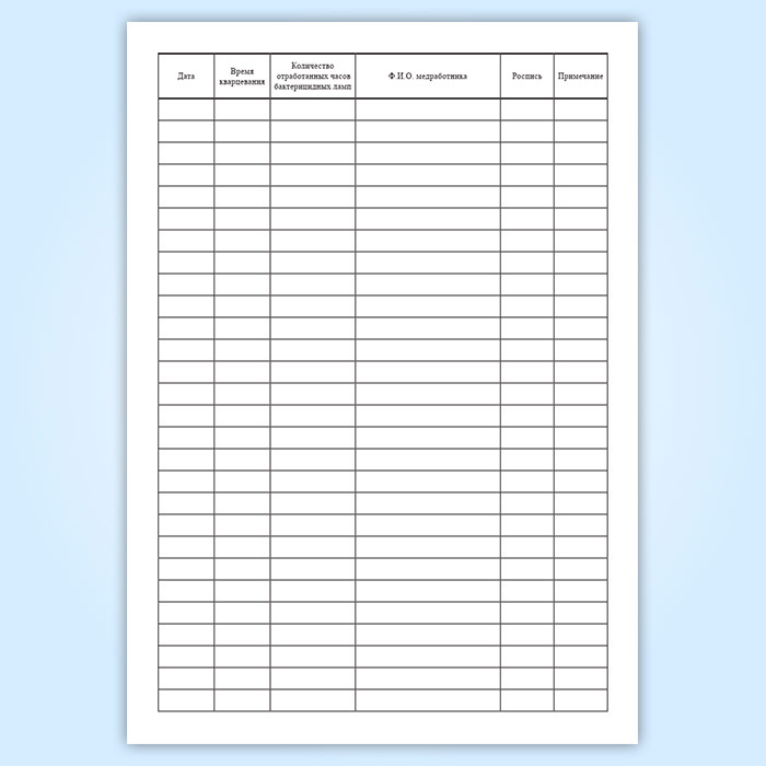 Журнал регистрации и контроля работы бактерицидной лампы в Ижевске купить