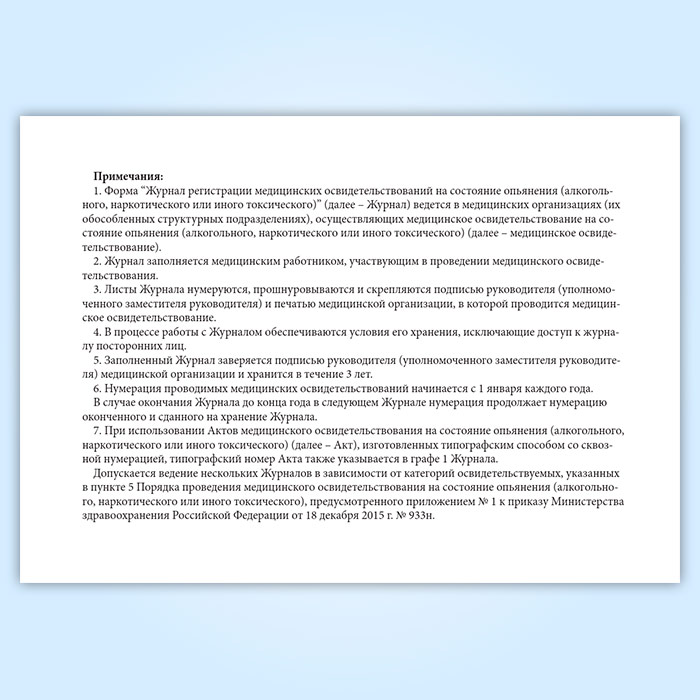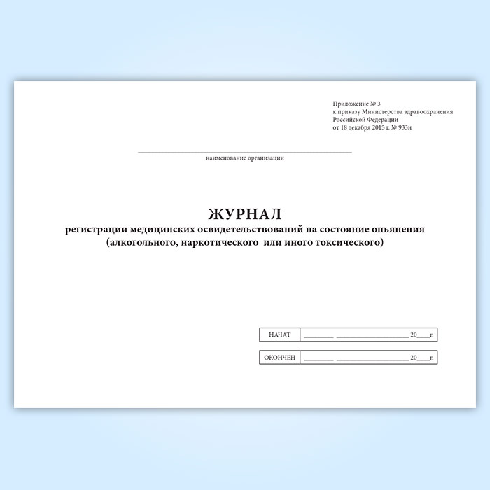 Журнал регистрации медицинских освидетельствований на состояние опьянения (алкогольного, наркотического или иного токсического) в Ижевске купить