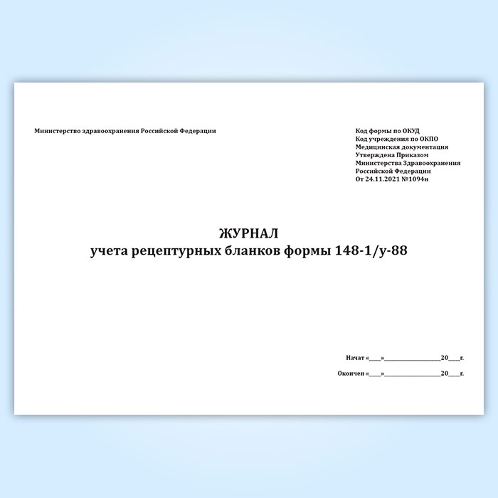 Журнал учета рецептурных бланков формы 148-1/у-88 (новый) (Приказ Минздрава России от 24.11.2021 N 1094н) в Ижевске купить