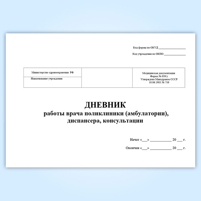 Дневник работы врача поликлиники (амбулатории), диспансера, консультации (форма 039/у) в Ижевске купить