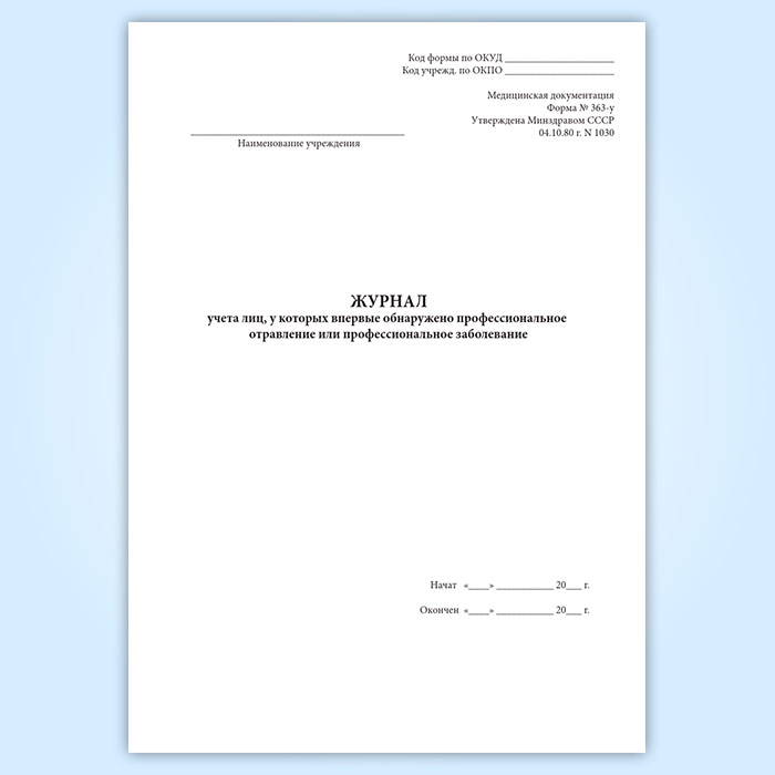Журнал учета лиц, у которых впервые обнаружено профессиональное отравление или профессиональное заболевание (форма 363-у) в Ижевске купить