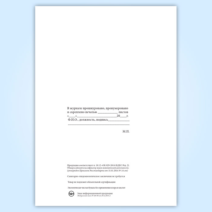 Вы получаете печатную продукцию прошнурованной и c местом для вашей печати в соответствии с действующими нормативными документами: