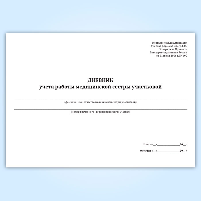 Дневник учета работы медицинской сестры участковой (форма 039/у-1-06) в Ижевске купить