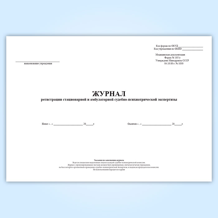 Журнал регистрации стационарной и амбулаторной судебно-психиатрической экспертизы (форма 105/у) в Ижевске купить