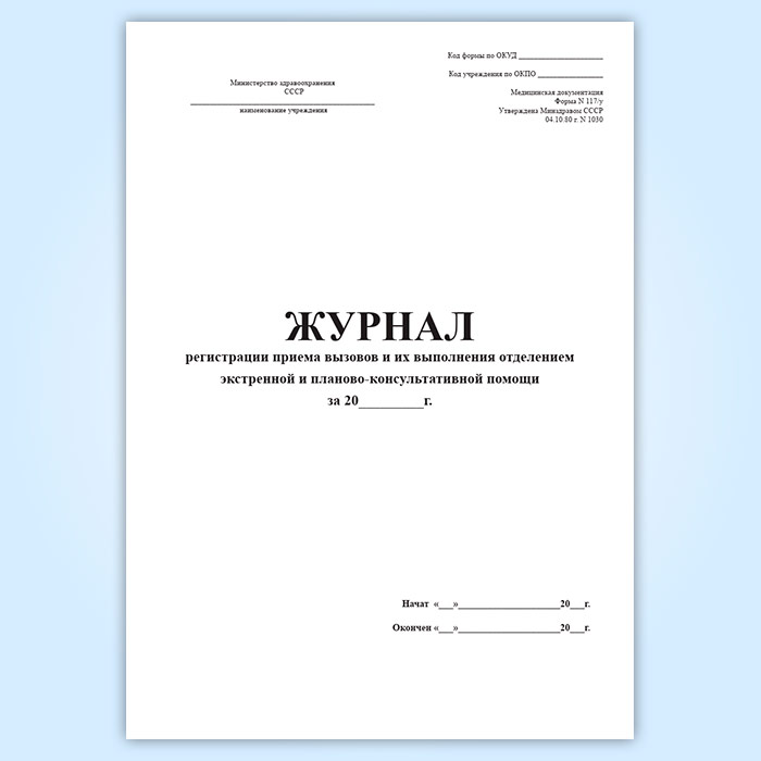 Журнал регистрации приема вызовов и их выполнения отделением экстренной и планово-консультативной помощи (форма 117/у) в Ижевске купить
