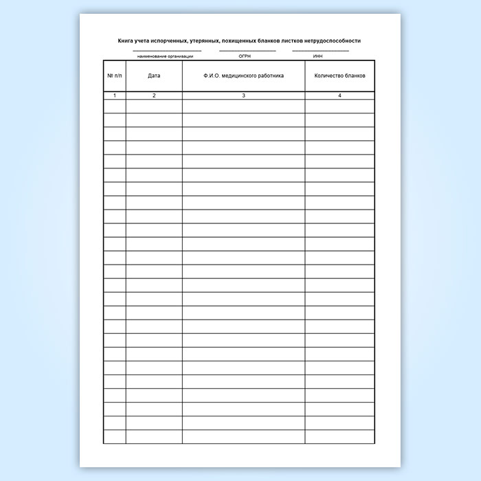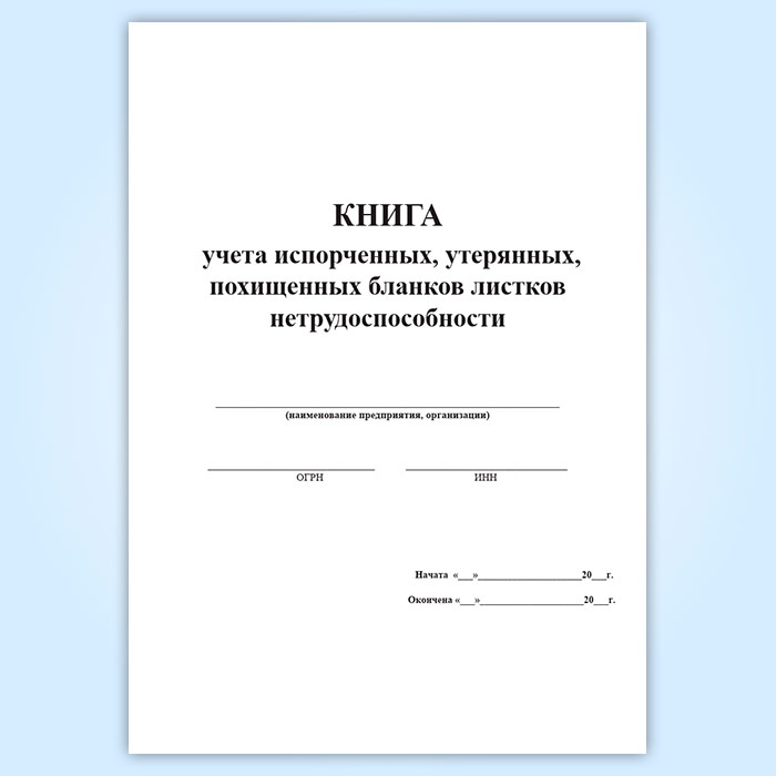 Книга учета испорченных, утерянных, похищенных бланков листков нетрудоспособности в Ижевске купить