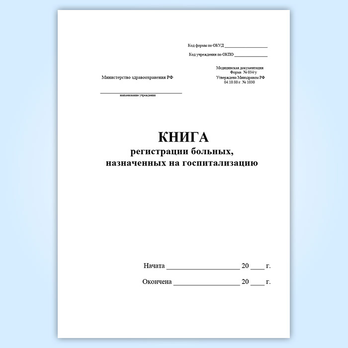 Книга регистрации больных, назначенных на госпитализацию (форма 034/у) в Ижевске купить
