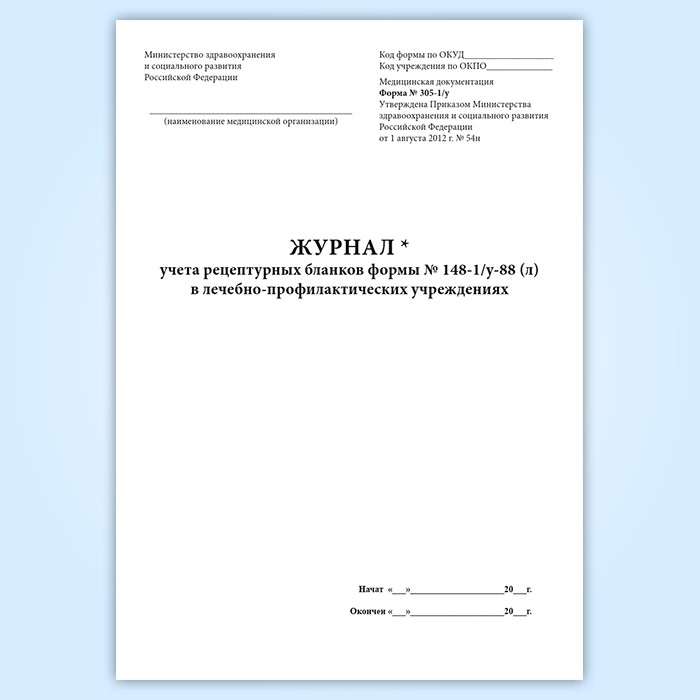 Журнал учета рецептурных бланков формы № 148-1/у-88 (л) в лечебно-профилактических учреждениях форма 305/у-1 в Ижевске купить
